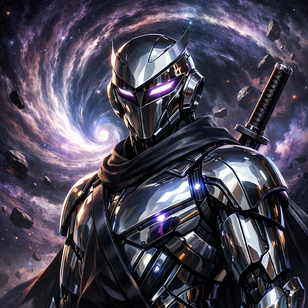 Chrome Ronin Vortex #046 ? A high-detail AI character portrait designed in a futuristic, collectible art style. You?re purchasing the digital artwork file for this character, ideal for collecting, displaying, or using as a profile-style digital collectible. What you receive: a digital artwork image file (high resolution) matching the product title, delivered for personal collection and display. This is a digital item delivered instantly after purchase. No physical item will be shipped.