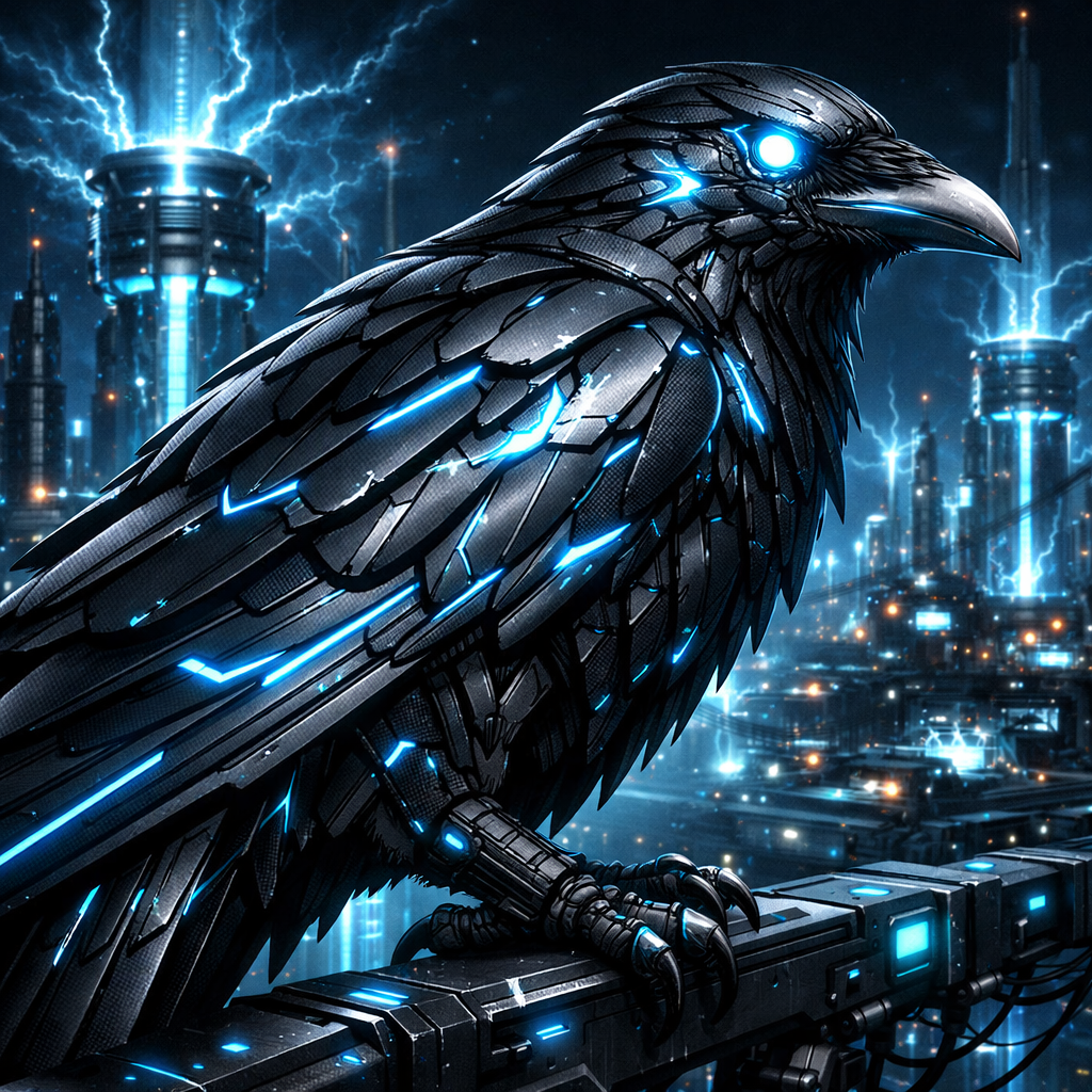 Ion Raven MKII #014 ? A cyber-styled animal artwork combining sleek tech details with a bold, modern collectible look. You?re purchasing the digital artwork file featuring this unique cyber animal design. What you receive: a digital artwork image file (high resolution) matching the product title, delivered for personal collection and display. This is a digital item delivered instantly after purchase. No physical item will be shipped.