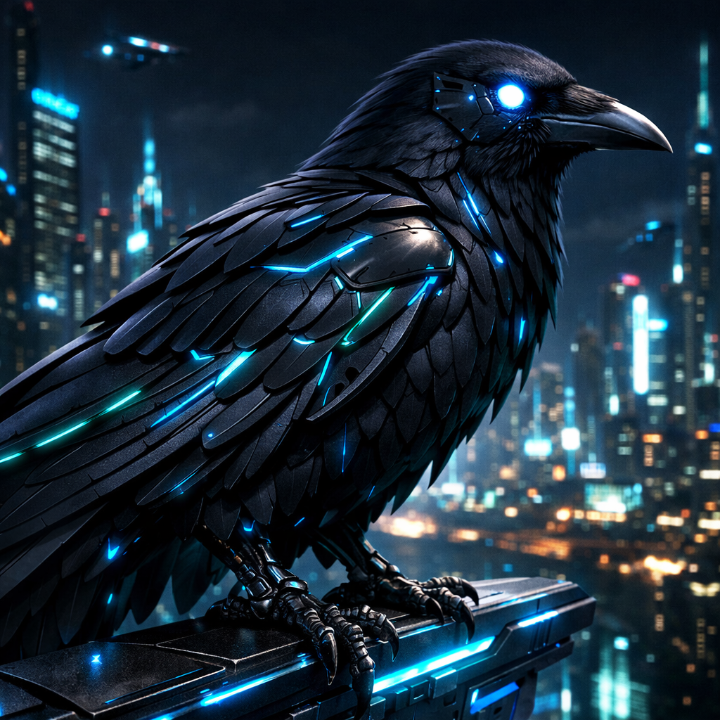 Neon Raven Vanta #009 ? A cyber-styled animal artwork combining sleek tech details with a bold, modern collectible look. You?re purchasing the digital artwork file featuring this unique cyber animal design. What you receive: a digital artwork image file (high resolution) matching the product title, delivered for personal collection and display. This is a digital item delivered instantly after purchase. No physical item will be shipped.