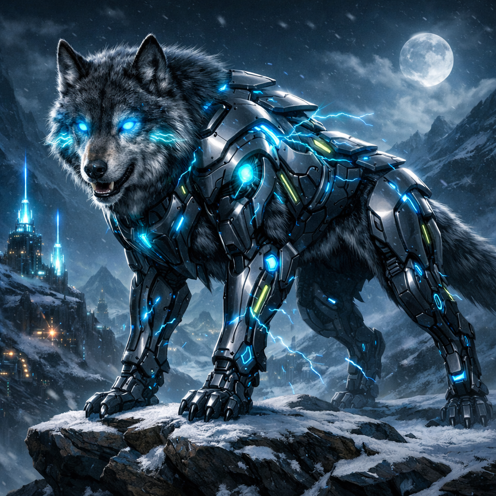 Volt Wolf Pulse #022 ? A cyber-styled animal artwork combining sleek tech details with a bold, modern collectible look. You?re purchasing the digital artwork file featuring this unique cyber animal design. What you receive: a digital artwork image file (high resolution) matching the product title, delivered for personal collection and display. This is a digital item delivered instantly after purchase. No physical item will be shipped.